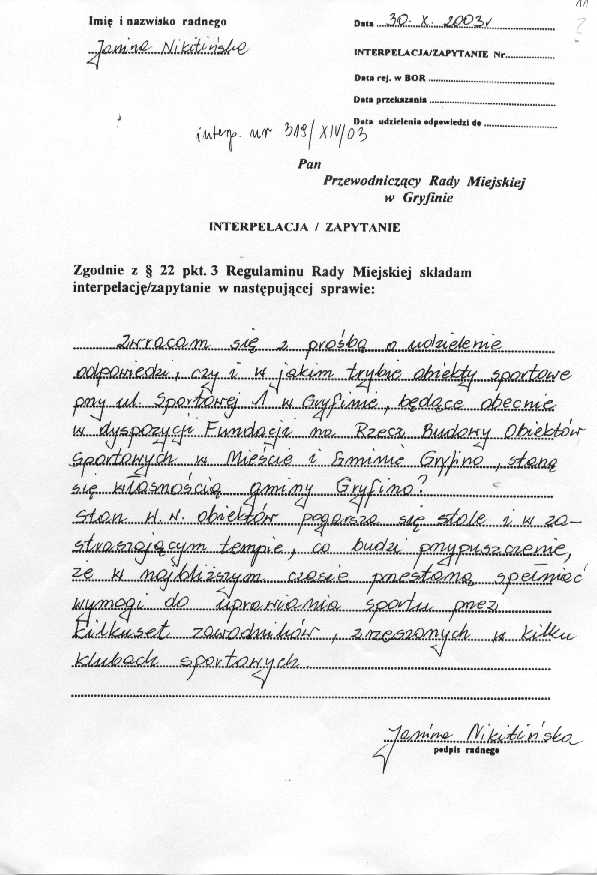 321/XIV/03 - interpelacja w załączeniu. ( strona_1 strona_2 )