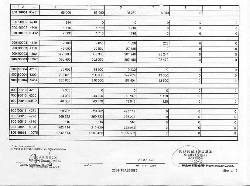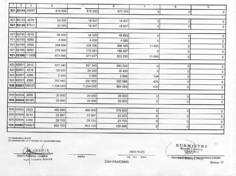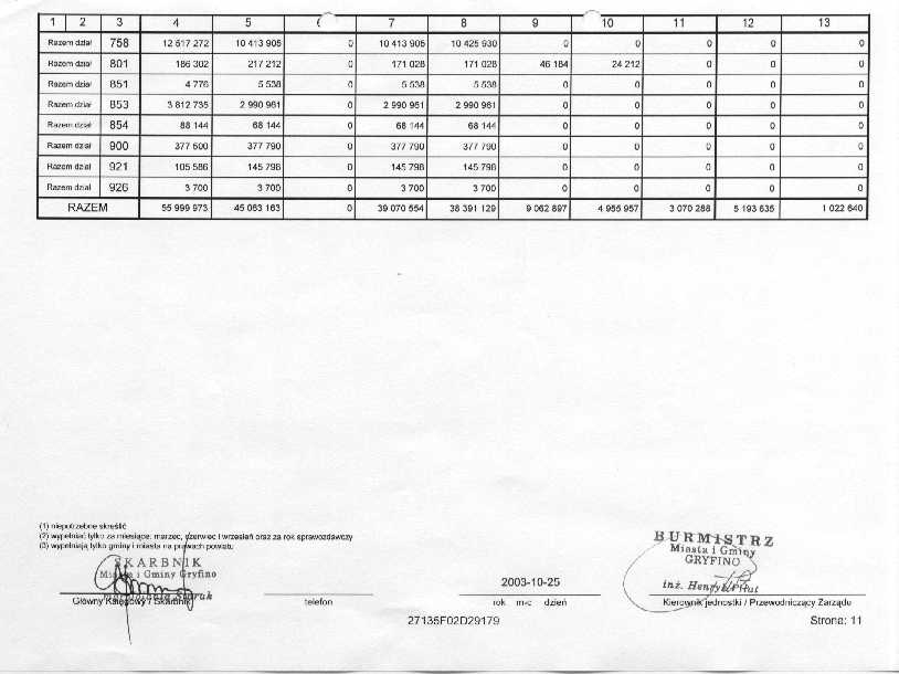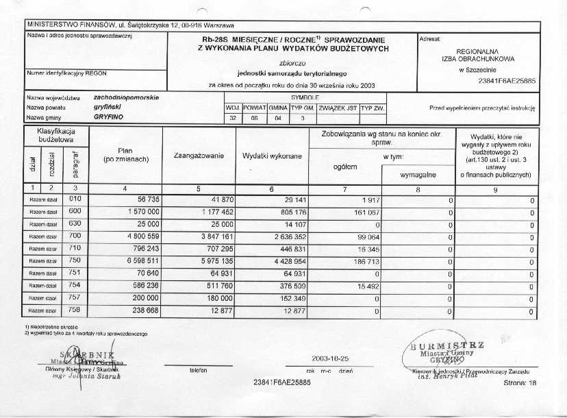 SPRAWOZDANIE z wykonania budżetu Gminy Gryfino od początku roku do dnia 30 września 2003.