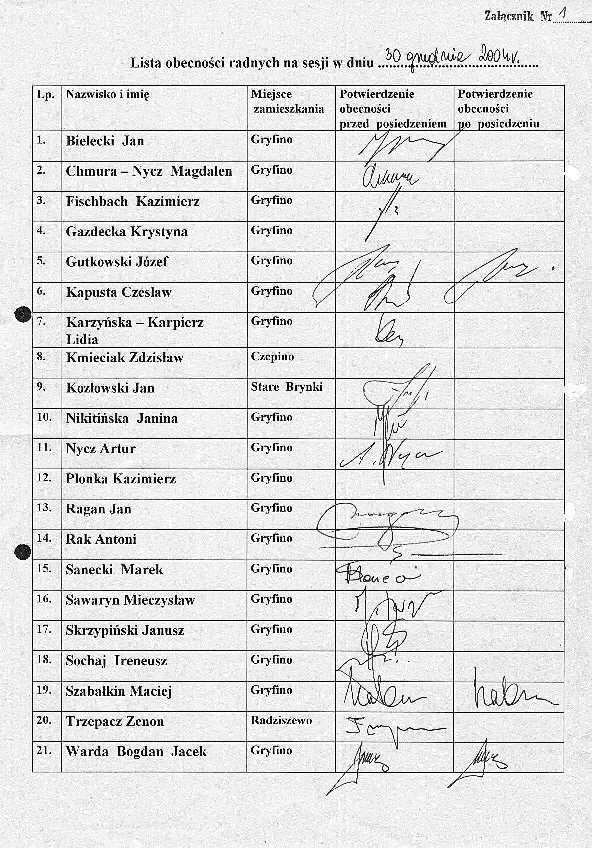 17. Lista obecności radnych - załącznik nr 18,