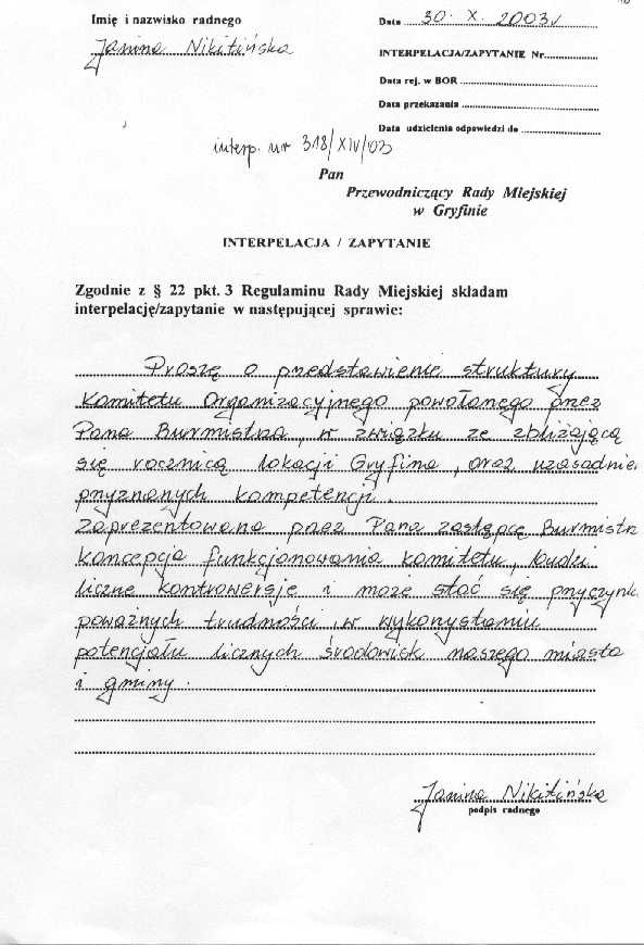 318/XIV/03 - interpelacja stanowi załącznik nr 10.