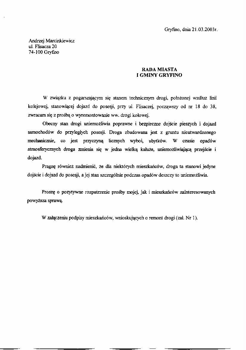 130/VII/03 - przy skrzyżowaniu ulic Władysława Reymonta oraz Jana Pawła II w Gryfinie na odcinku około 100 m jest bardzo zniszczona droga. Miejscami jest nieprzejezdna. Należy naprawić drogę.