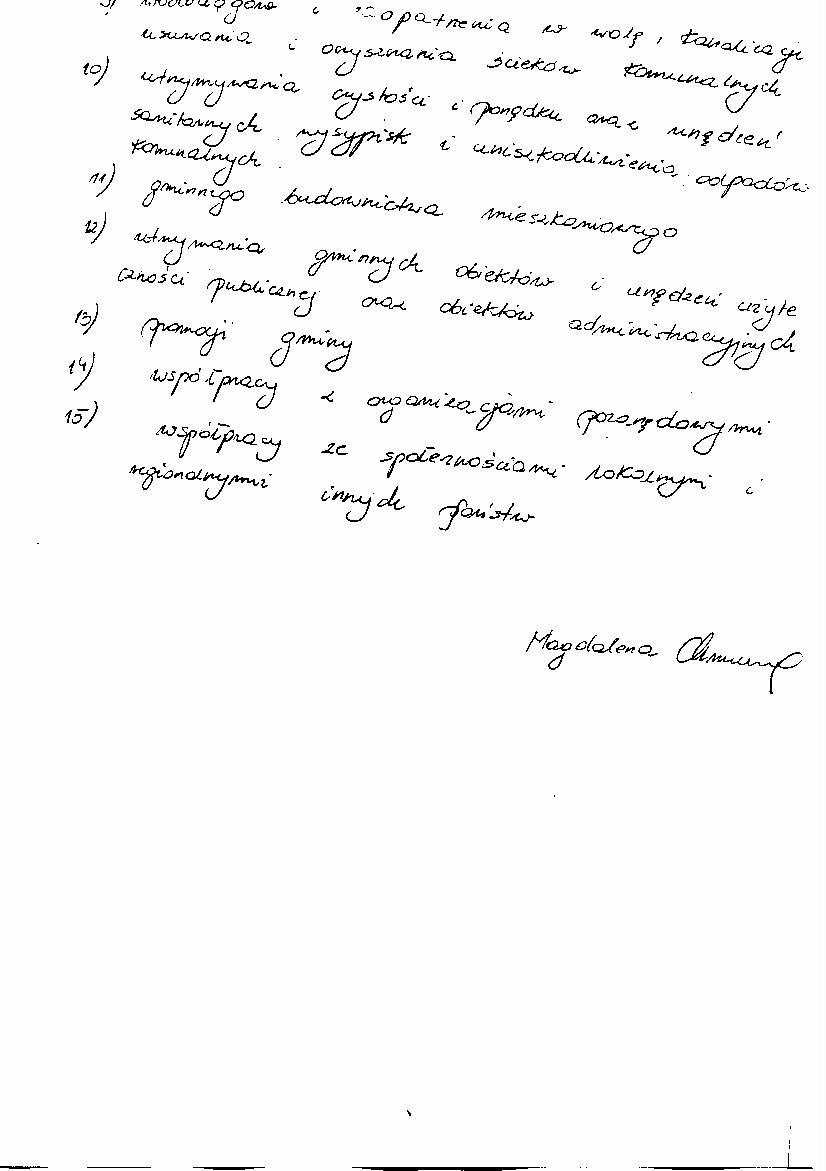 Ad. 4/II/02 - jako radna powinna Pani Chmura wiedzieć, że kierunki działania Burmistrza określa zatwierdzony przez Radę budżet oraz uchwalona przez Radę Strategia Rozwoju Miasta i Gminy. Myślę, że po okresie trzech miesięcy urzędowania będę mógł przedstawić propozycje zmian do w/w Strategii.