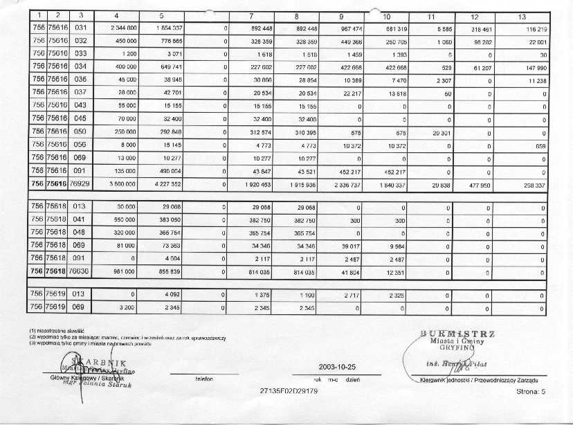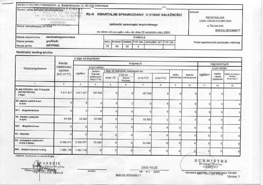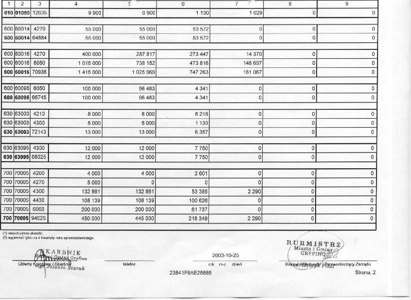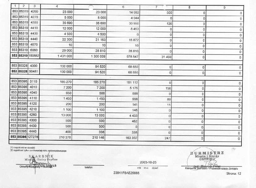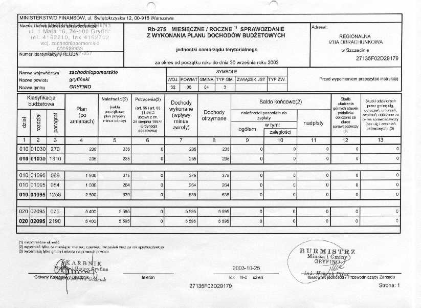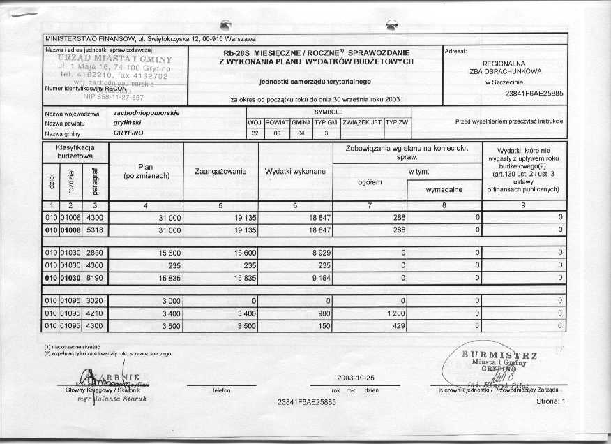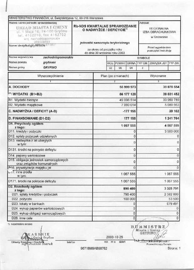 SPRAWOZDANIE z wykonania budżetu Gminy Gryfino od początku roku do dnia 30 września 2003.