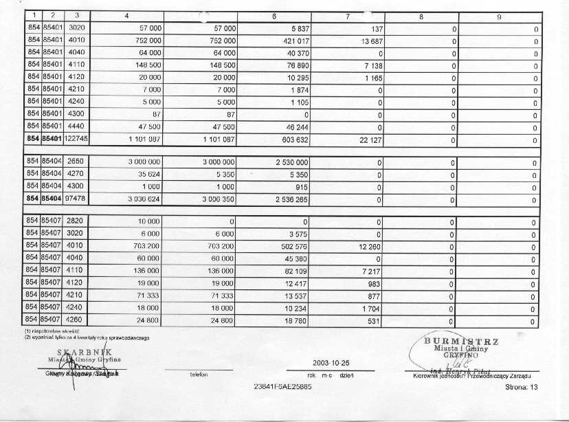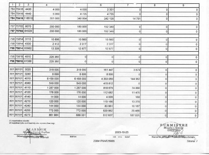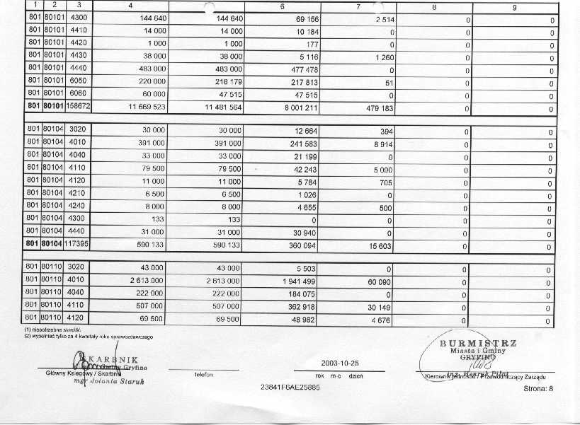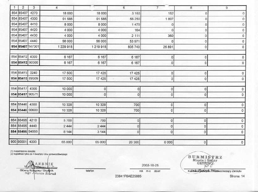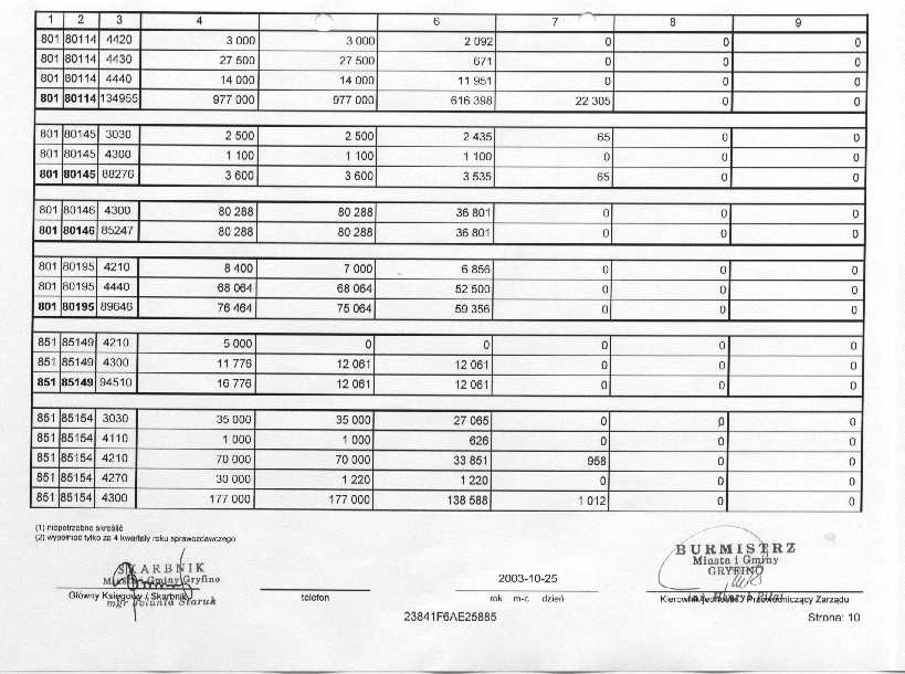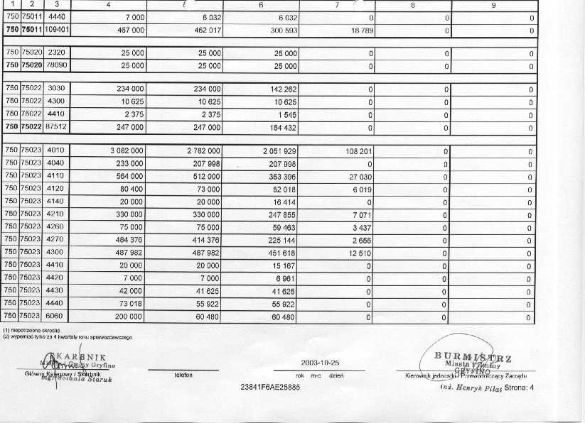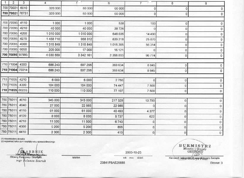 SPRAWOZDANIE z wykonania budżetu Gminy Gryfino od początku roku do dnia 30 września 2003.